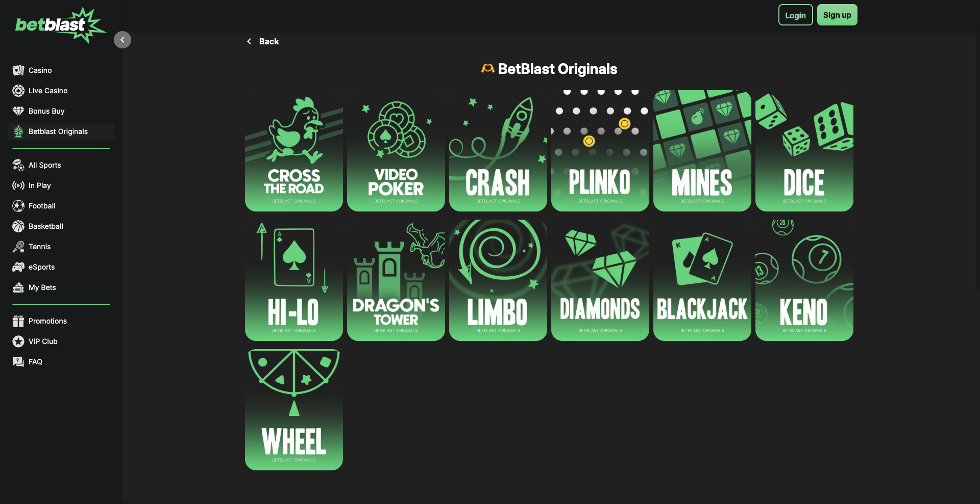 Sports fans and bookies aren’t left out, with hundreds of live and scheduled sporting events from around the globe. Betblasts Sportsbook is on par with some of the top crypto gambling platforms. You can place bets on more than 40+ sports and Esports categories. Additionally, the margins are low, and the odds are competitive.